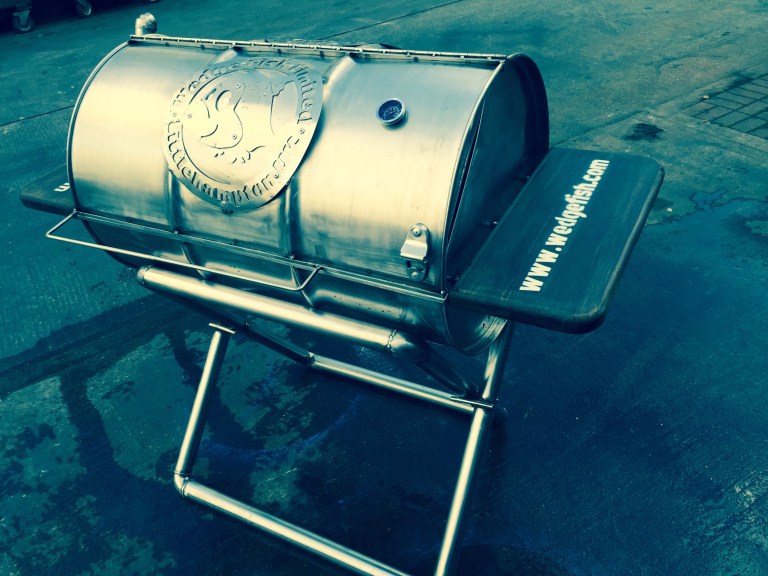 Our favourite commission yet for Wedge Fish. A stainless steel drum cut and customised inside and out with some nice detailing inc. black exterior grade bamboo shelving and one of a kind chimney… 10mm laser cut mild steel grills with custom graphics incorporated into the cooking surface